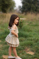 Sophie Set features a structured cropped top adorned with grommet details on the straps and two exquisite signature buttons with a delicate little girl motif. The voluminous twirl skirt adds movement and grace, creating a silhouette that is both playful and sophisticated. A statement ensemble for the little fashion icon.
