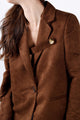 This suede blazer redefines timeless elegance with its unique collar detail. Perfect for elevating any wardrobe with a touch of modern luxury.